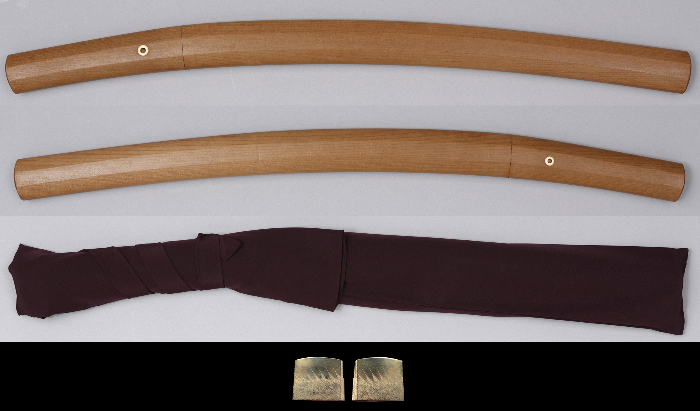【付属品】素銅地金着一重ハバキ、白鞘、白鞘袋、登録証(愛知県2872号 昭和廿九年十一月弍日交付)、特別保存刀剣鑑定書(日本美術刀剣保存協会 平成30年8月20日発行)