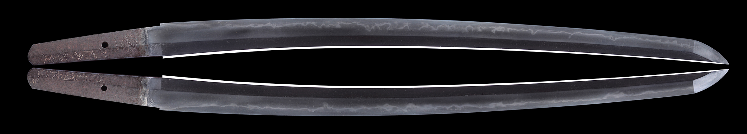 [ Signature ] omote : (chrysanthemum crest "菊紋")"一 河内守祐定" ura : "備前国長船住" |