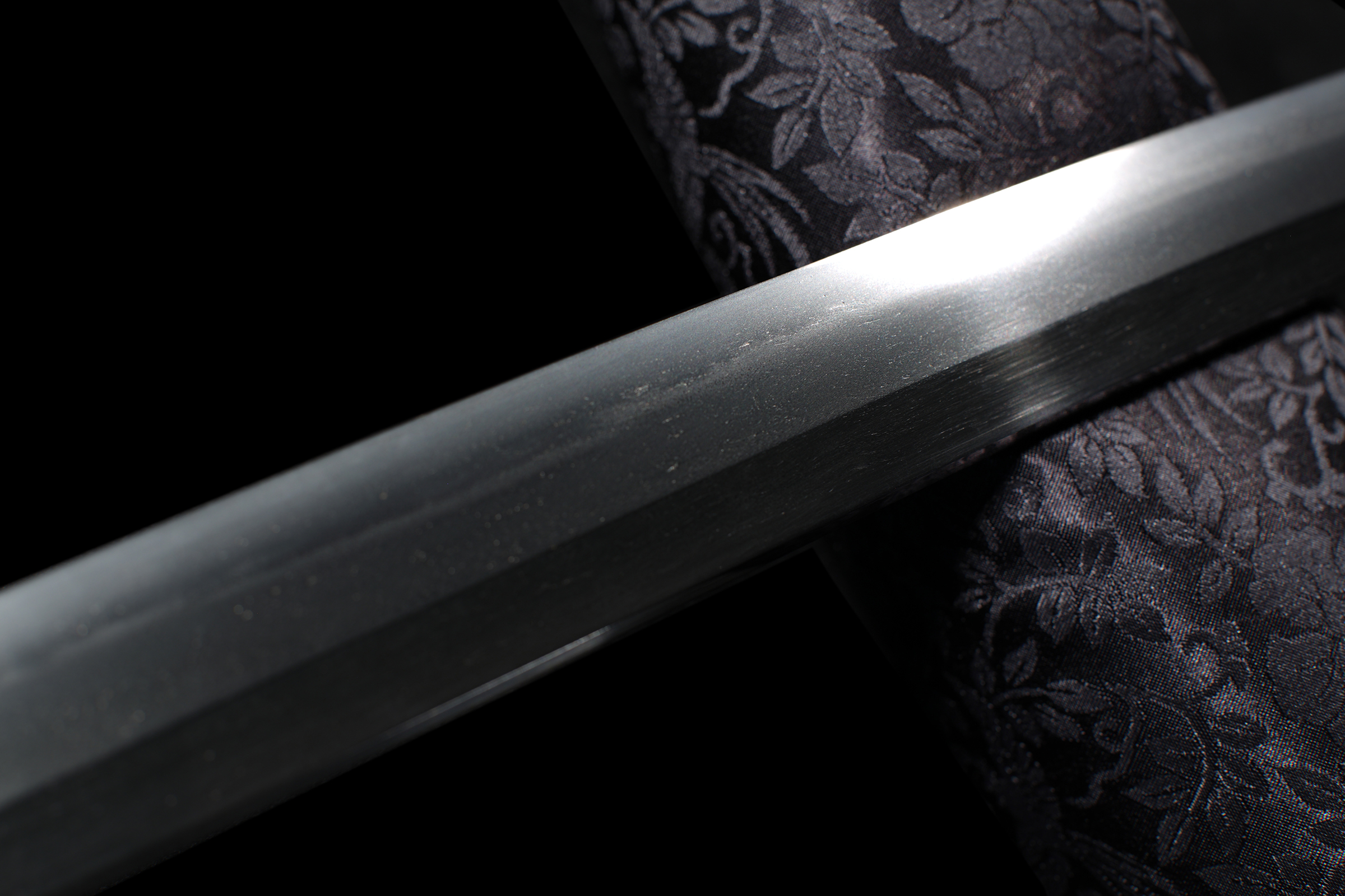 【寸法】刃長 70.0cm(2尺3寸1分0厘)、反り 1.2cm(3分9厘)、元幅 3.31cm、元重ね 0.75cm、先幅 2.29cm、先重ね 0.53cm、目釘孔 2個(内1個埋)、刀身重量 946g 、白鞘全長 99.5cm |