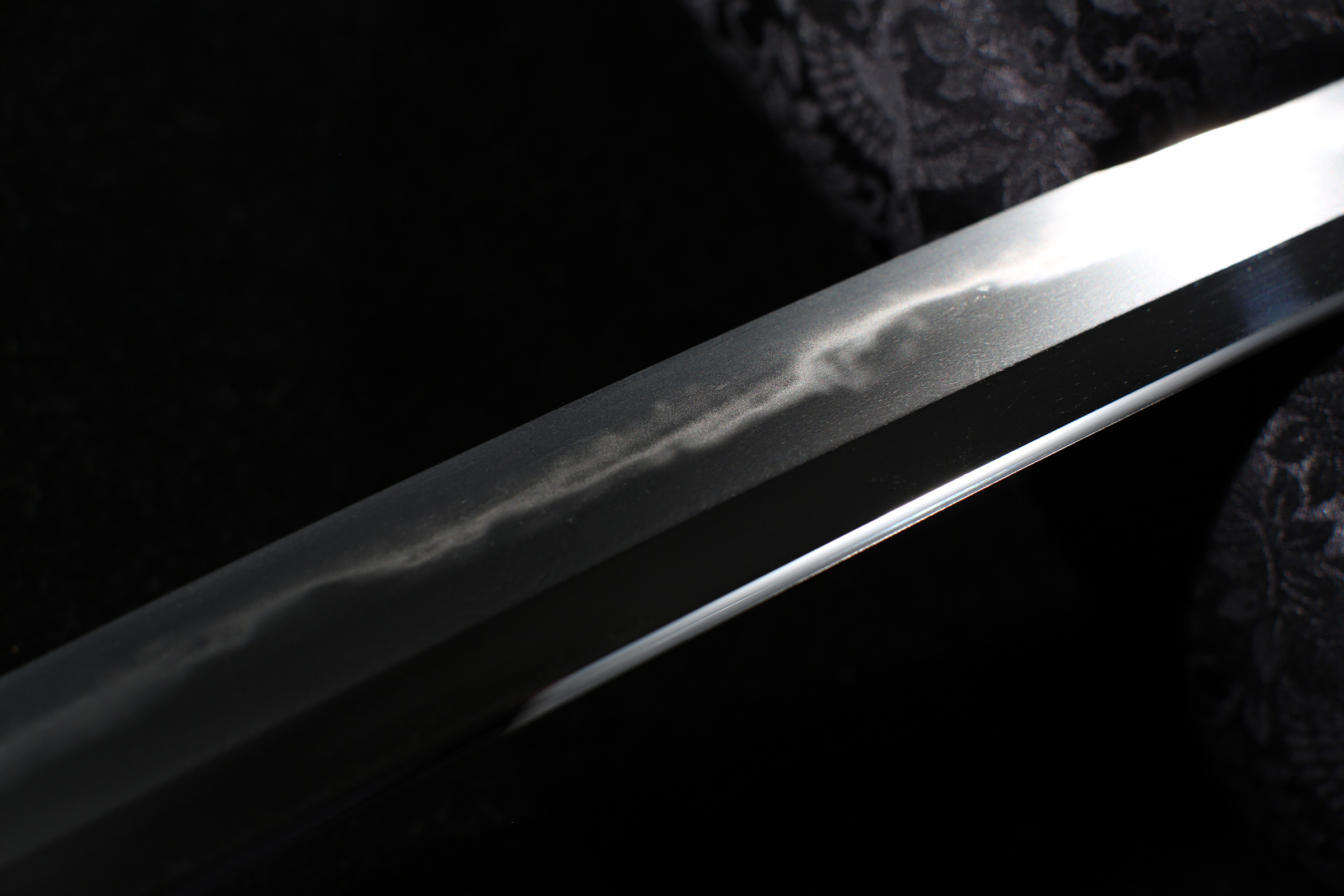 【付属品】素銅地金着一重ハバキ、白鞘、白鞘袋、登録証(愛知県2872号 昭和廿九年十一月弍日交付)、特別保存刀剣鑑定書(日本美術刀剣保存協会 平成30年8月20日発行)