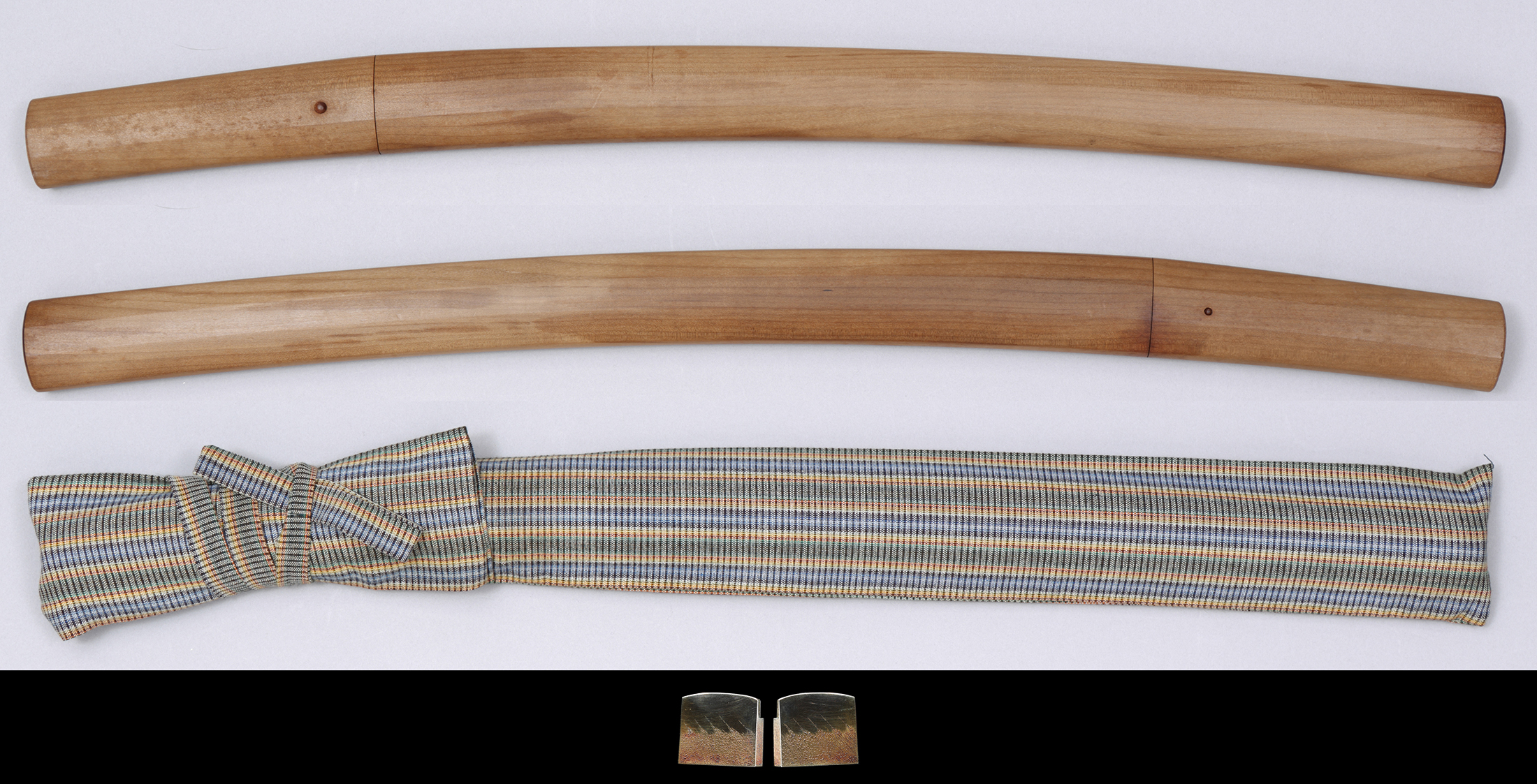 【付属品】素銅地金着一重ハバキ、白鞘、白鞘袋、登録証(福岡県55231号 昭和四拾四年七月拾七日交付) |